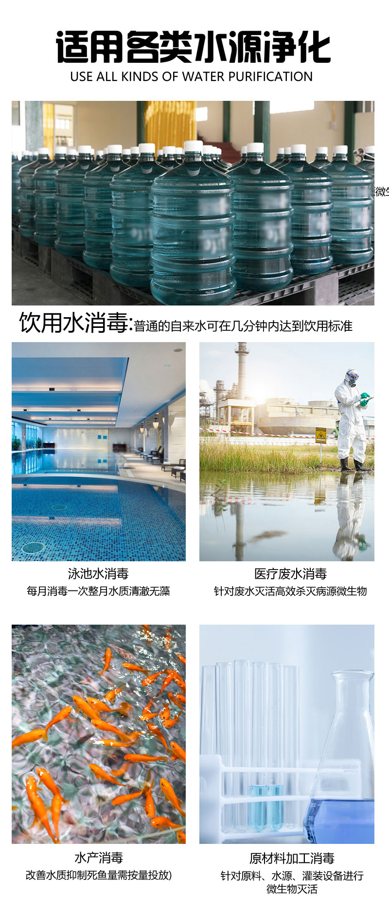 產(chǎn)品廣泛應(yīng)用于水產(chǎn)養(yǎng)殖,工廠污水處理,純凈水/自來水/飲用水凈化,車間廢氣處理,醫(yī)用污水處理,游泳池凈化,畜牧水產(chǎn)養(yǎng)殖,農(nóng)業(yè)灌溉