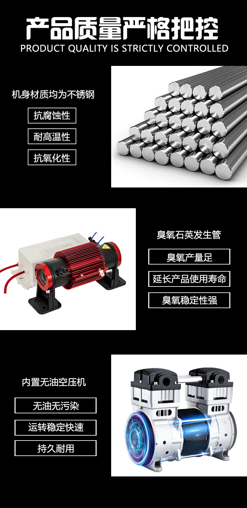 ◆本機(jī)內(nèi)置氧氣發(fā)生單元,臭氧發(fā)生單元,無油空壓機(jī),過濾裝置,設(shè)備通電即可使用