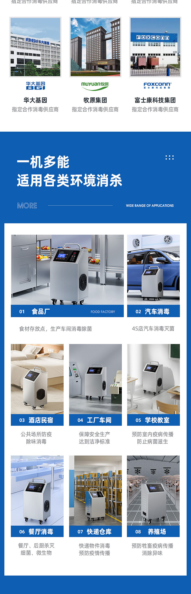 產(chǎn)品廣泛應(yīng)用于室內(nèi)空氣殺菌除異味、除煙味、除甲醛,除甲苯,家庭飲用水凈化、果蔬、肉類(lèi)、海鮮等解毒保鮮,家用衣服、被褥除螨、手機(jī)錢(qián)包殺菌消毒,用于洗澡、洗臉可徹底清除毛孔中的污漬,活化表皮細(xì)胞,促進(jìn)皮膚新陳代謝,用臭氧水洗頭屑止癢,泡腳可治腳氣