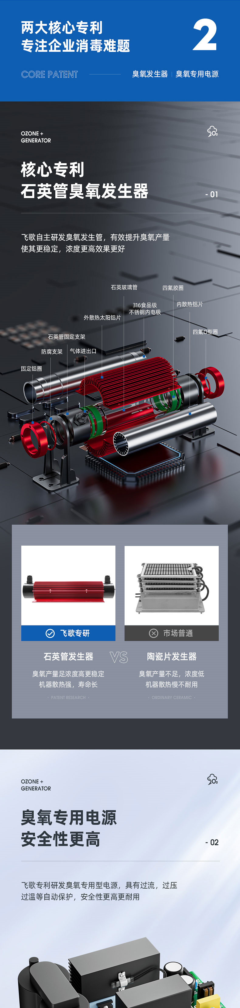 ◆線路板核心電子元件采用進(jìn)口芯片,如:GBT八C等核心芯片,整塊線路自主研發(fā),自主編寫(xiě)程序,具有過(guò)流、過(guò)溫、過(guò)壓的保護(hù)。完美的配合飛歌設(shè)計(jì)的臭氧發(fā)生管風(fēng)扇采用七葉子的雙滾珠風(fēng)扇,風(fēng)量大,噪音小,散熱效果極佳
