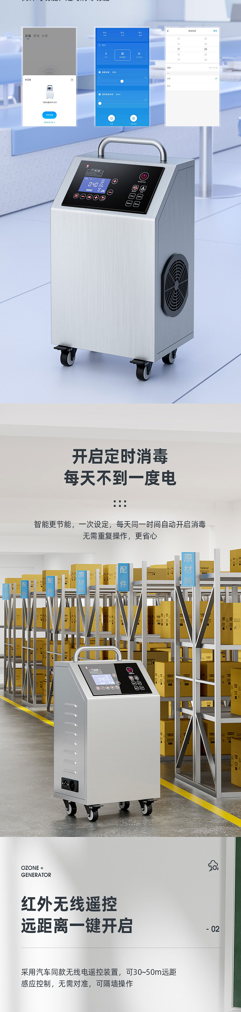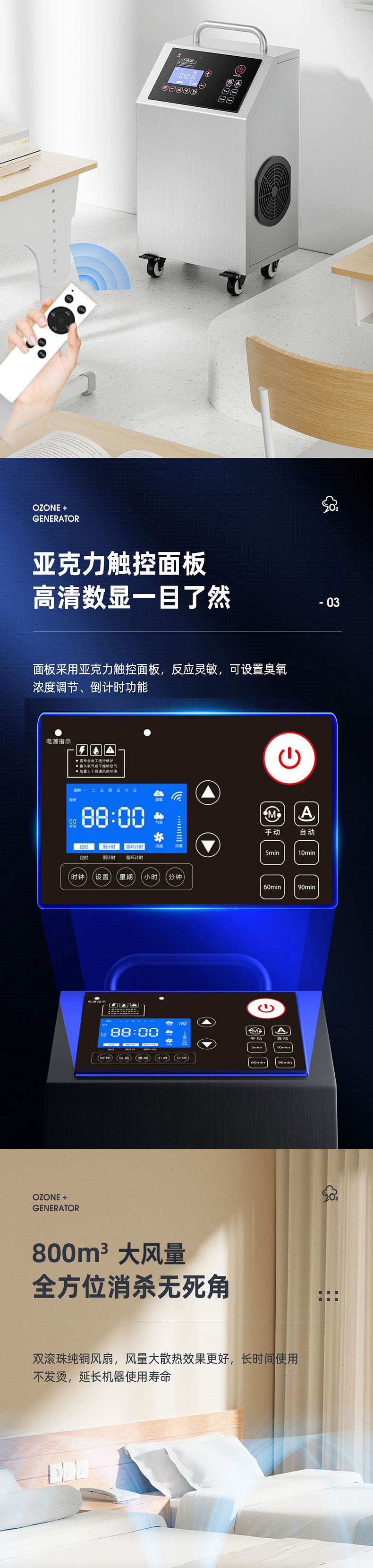 ◆控制面板:飛歌移動(dòng)式智能臭氧發(fā)生器控制部件,是飛歌電子部門(mén)自主設(shè)計(jì),研發(fā)的控制板,具有觸控、Wif物聯(lián)、遙控的控制功能