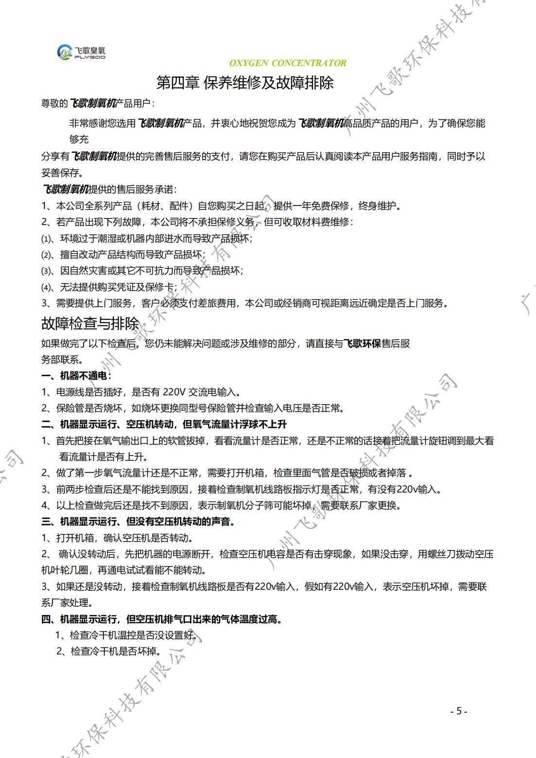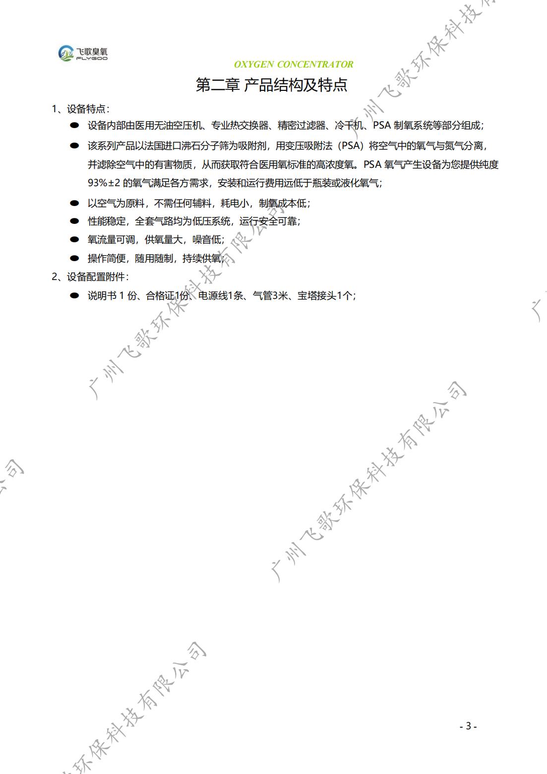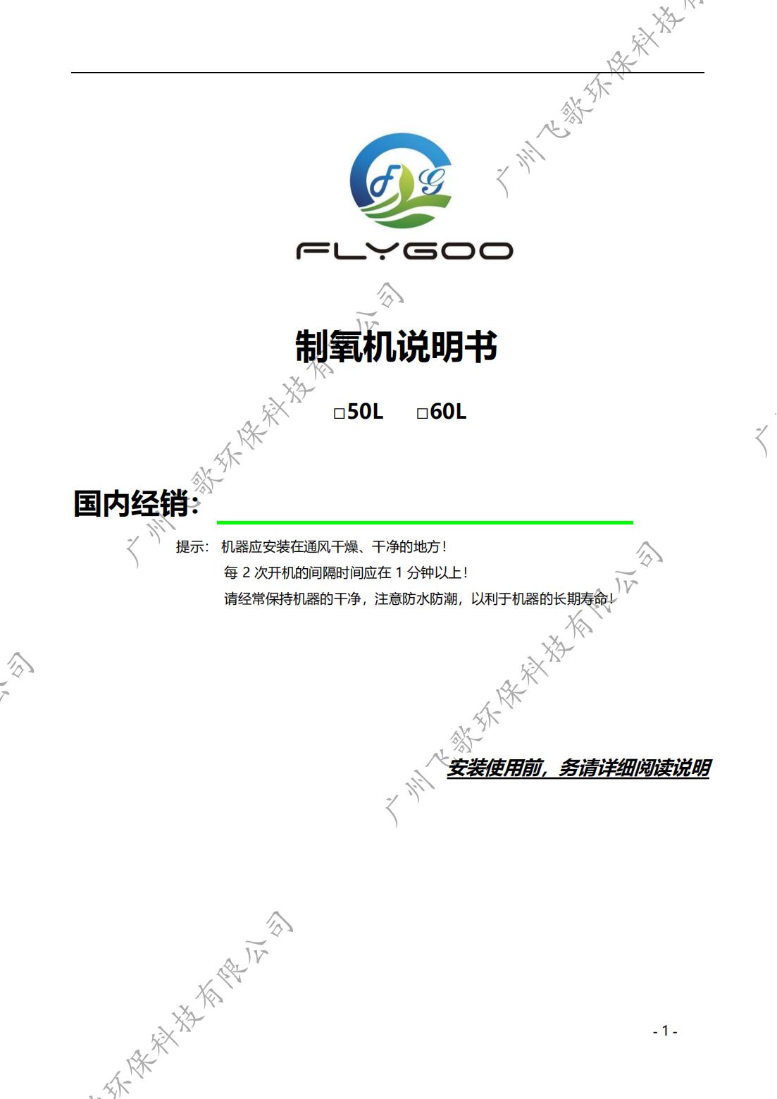 飛歌50-60L制氧機(jī)產(chǎn)品使用說明書(帶冷風(fēng)機(jī))